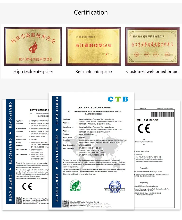 Hangzhou Felshare Biotechnology Co.,Ltd is not only the leading brand space fragrance and aromatherapy essential oil but also it's international famous fragrance brand supplier. Our essential oil atomization technology is introduced from Germany. As a new technology enterprise ,carrying approval of CE, EMC, RoHS and other safety regulation certificates. Our company has invested heavily to establish our own R&D center and essential oil production base in France and Belgium. We are committed to provide a healthy and green breathing environment for every customer. Your Satisfaction,Our Impetus!