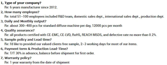 3.Generally, for large qty of aroma diffuser we will use FOB, and if you have your shipping agent , we can offer EXW Price for you.